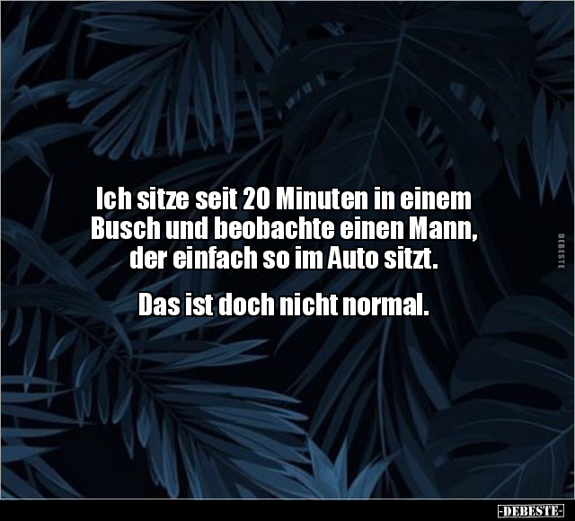 Ich sitze seit 20 Minuten in einem Busch und beobachte einen Mann, der einfach so im Auto sitzt. Das ist doch nicht normal.