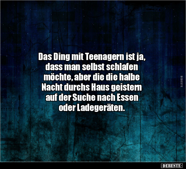 Das Ding mit Teenagern ist ja, dass man selbst schlafen möchte, aber die die halbe Nacht durchs Haus geistern auf der Suche nach Essen oder Ladegeräten.