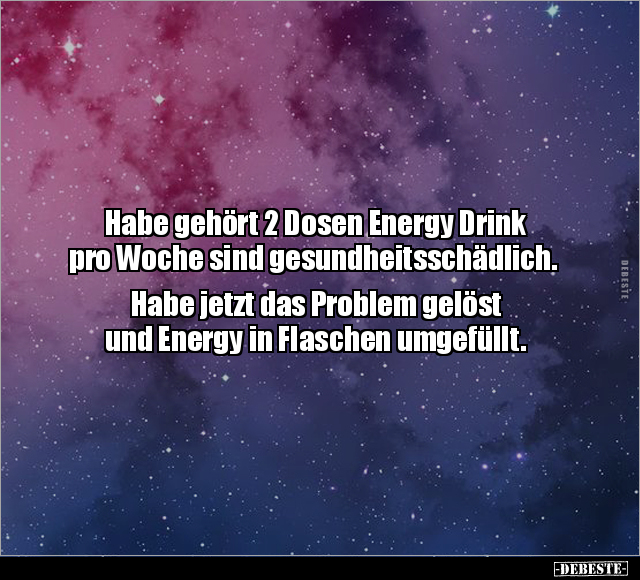 Habe gehört 2 Dosen Energy Drink pro Woche sind gesundheitsschädlich. Habe jetzt das Problem gelöst und Energy in Flaschen umgefüllt.