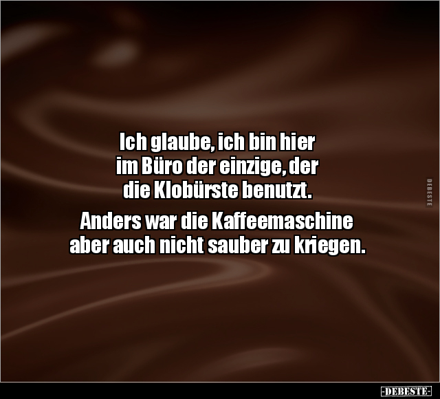 Ich glaube, ich bin hier im Büro der einzige, der die Klobürste benutzt. Anders war die Kaffeemaschine aber auch nicht sauber zu kriegen.