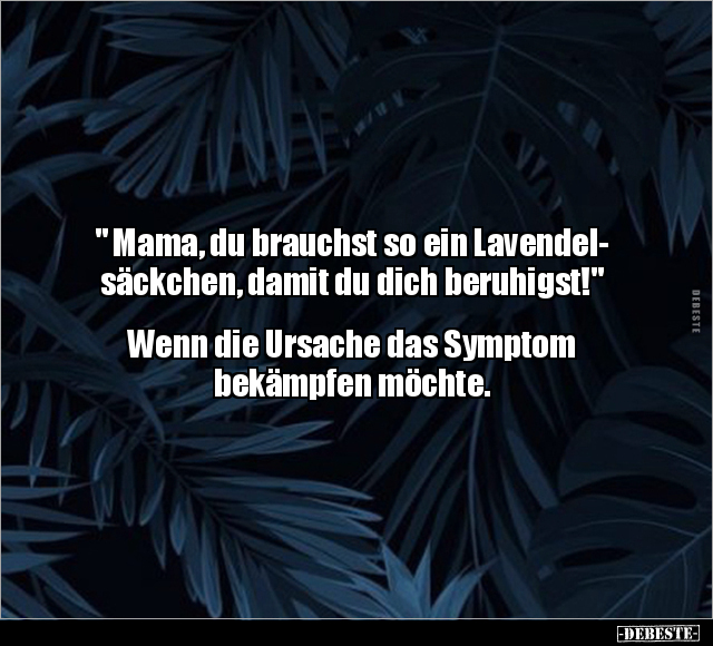 " Mama, du brauchst so ein Lavendel- säckchen, damit du dich beruhigst!" Wenn die Ursache das Symptom bekämpfen möchte.