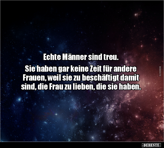 Echte Männer sind treu. Sie haben gar keine Zeit für andere Frauen, weil sie zu beschäftigt damit sind, die Frau zu lieben, die sie haben.