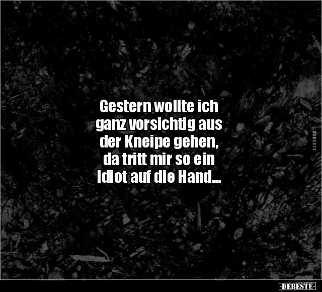 Gestern wollte ich ganz vorsichtig aus der Kneipe gehen, da tritt mir so ein Idiot auf die Hand...