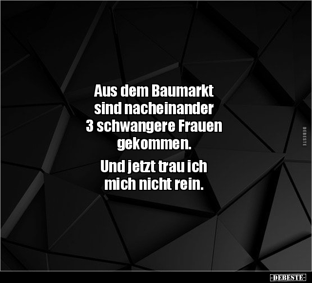 Aus dem Baumarkt sind nacheinander 3 schwangere Frauen gekommen. Und jetzt trau ich mich nicht rein.
