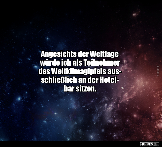 Angesichts der Weltlage würde ich als Teilnehmer des Weltklimagipfels aus- schließlich an der Hotel- bar sitzen.
