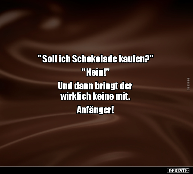 " Soll ich Schokolade kaufen?" " Nein!" Und dann bringt der wirklich keine mit. Anfänger!