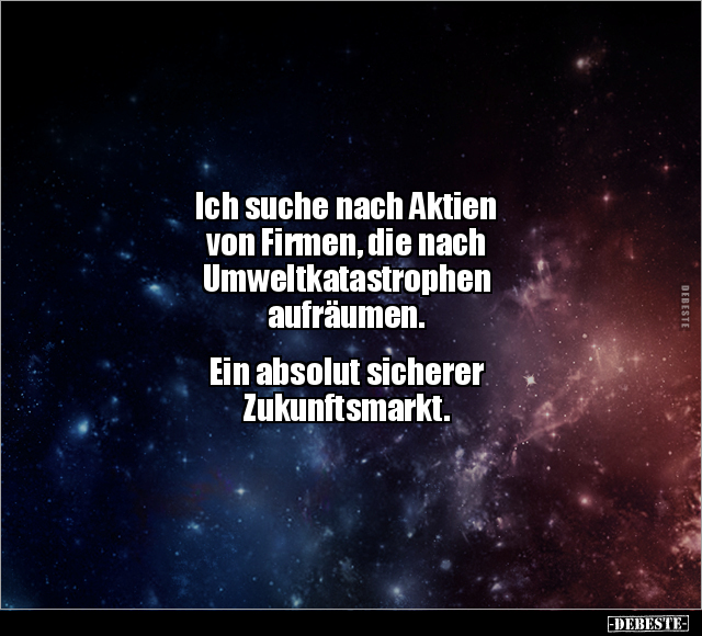 Ich suche nach Aktien von Firmen, die nach Umweltkatastrophen aufräumen. Ein absolut sicherer Zukunftsmarkt.