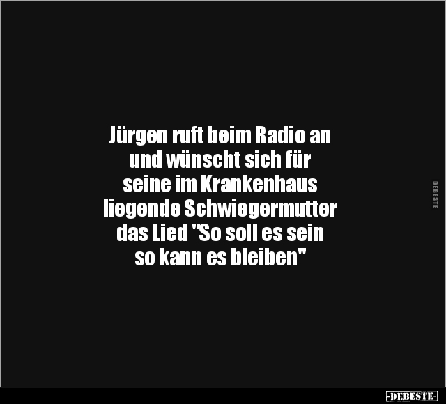 Jürgen ruft beim Radio an und wünscht sich für seine im Krankenhaus liegende Schwiegermutter das Lied "So soll es sein so kann es bleiben"
