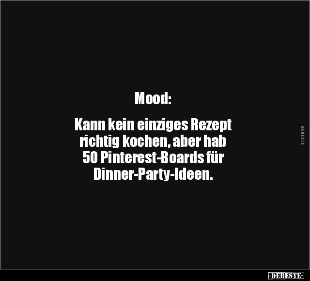 Mood: Kann kein einziges Rezept richtig kochen, aber hab 50 Pinterest-Boards für Dinner-Party-Ideen.