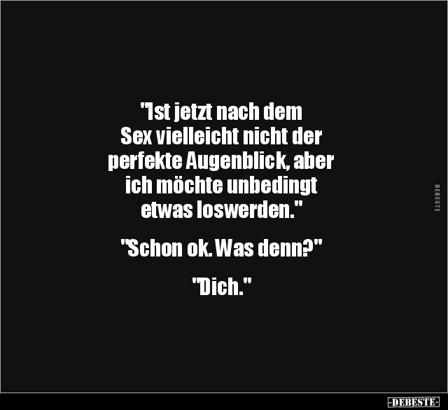 "Ist jetzt nach dem Sex vielleicht nicht der perfekte Augenblick, aber ich möchte unbedingt etwas loswerden." "Schon ok. Was denn?" "Dich."