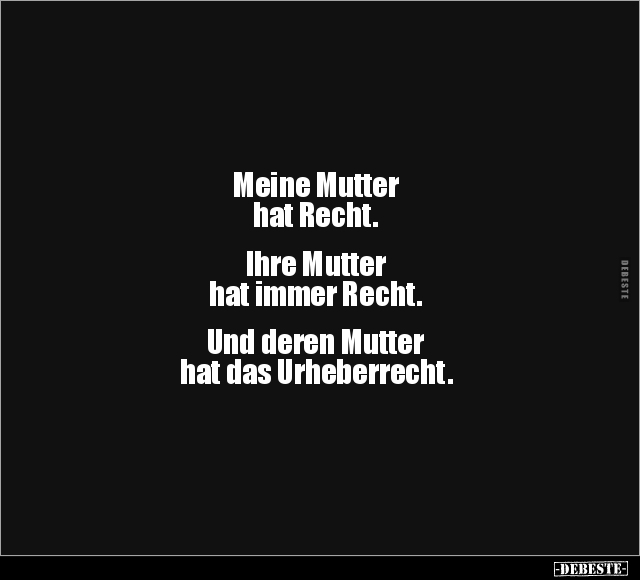 Meine Mutter hat Recht. Ihre Mutter hat immer Recht. Und deren Mutter hat das Urheberrecht.