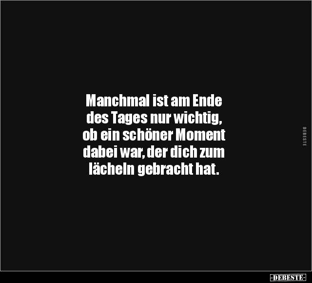 Manchmal ist am Ende des Tages nur wichtig, ob ein schöner Moment dabei war, der dich zum lächeln gebracht hat.