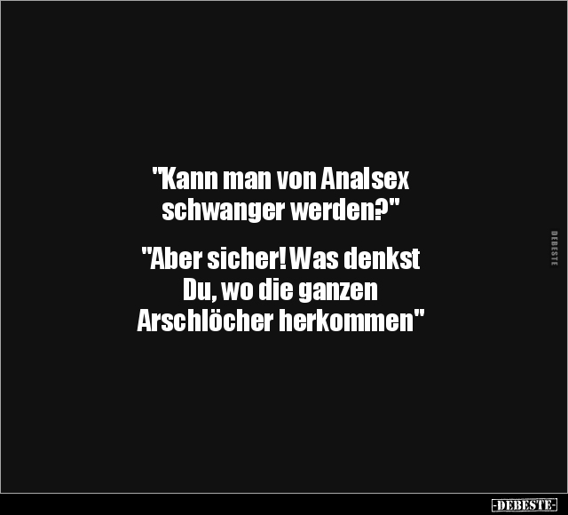 "Kann man von Analsex schwanger werden?" "Aber sicher! Was denkst Du, wo die ganzen Arschlöcher herkommen"