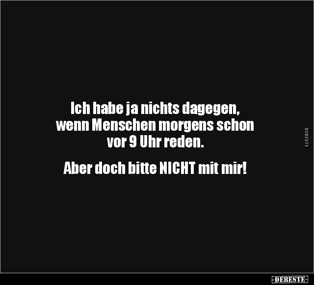 Ich habe ja nichts dagegen, wenn Menschen morgens schon vor 9 Uhr reden. Aber doch bitte NICHT mit mir!
