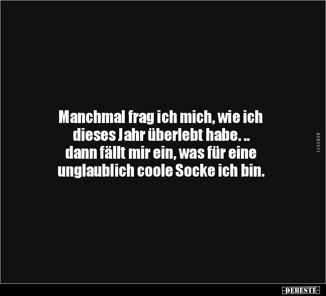 Manchmal frag ich mich, wie ich dieses Jahr überlebt habe. .. dann fällt mir ein, was für eine unglaublich coole Socke ich bin.