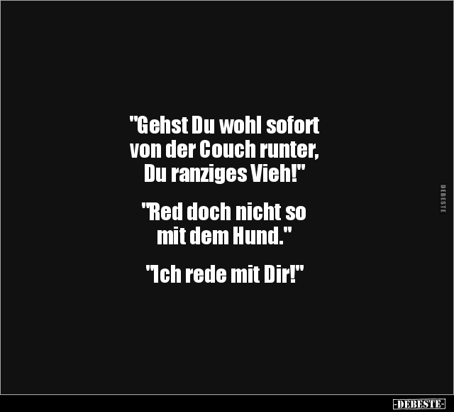 "Gehst Du wohl sofort von der Couch runter, Du ranziges Vieh!" "Red doch nicht so mit dem Hund." "Ich rede mit Dir!"