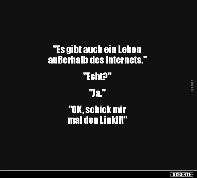 "Es gibt auch ein Leben außerhalb des Internets." "Echt?" "Ja." "OK, schick mir mal den Link!!!"