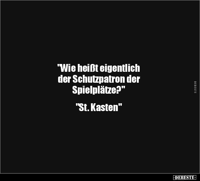 "Wie heißt eigentlich der Schutzpatron der Spielplätze?" "St. Kasten"