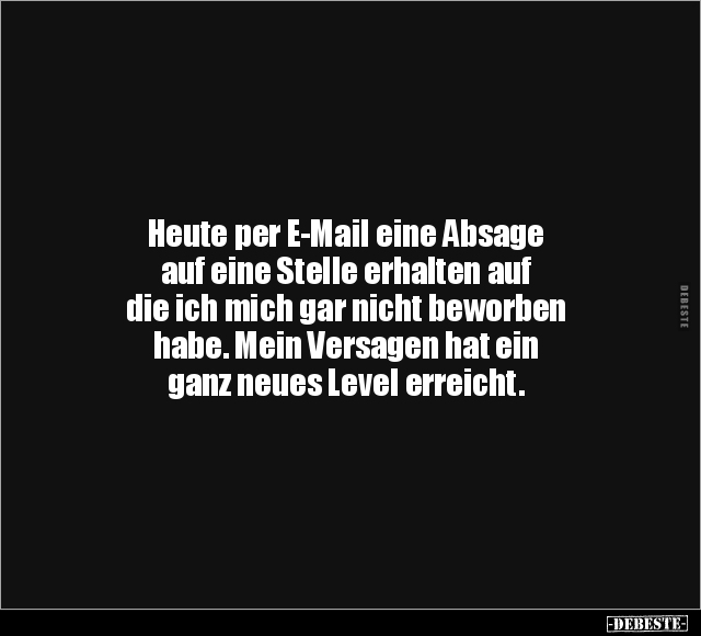 Heute per E-Mail eine Absage auf eine Stelle erhalten auf die ich mich gar nicht beworben habe. Mein Versagen hat ein ganz neues Level erreicht.