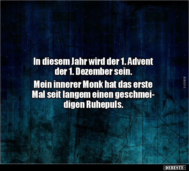 In diesem Jahr wird der 1. Advent der 1. Dezember sein. Mein innerer Monk hat das erste Mal seit langem einen geschmei- digen Ruhepuls.