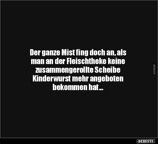 Der ganze Mist fing doch an, als man an der Fleischtheke keine zusammengerollte Scheibe Kinderwurst mehr angeboten bekommen hat...