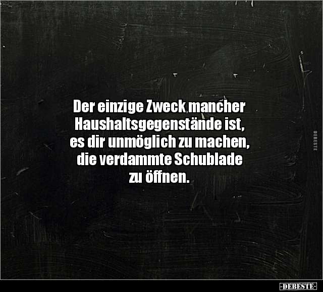 Der einzige Zweck mancher Haushaltsgegenstände ist, es dir unmöglich zu machen, die verdammte Schublade zu öffnen.