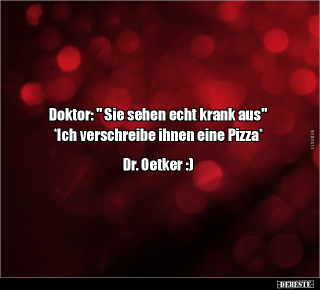 Doktor: " Sie sehen echt krank aus" *Ich verschreibe ihnen eine Pizza* Dr. Oetker :)