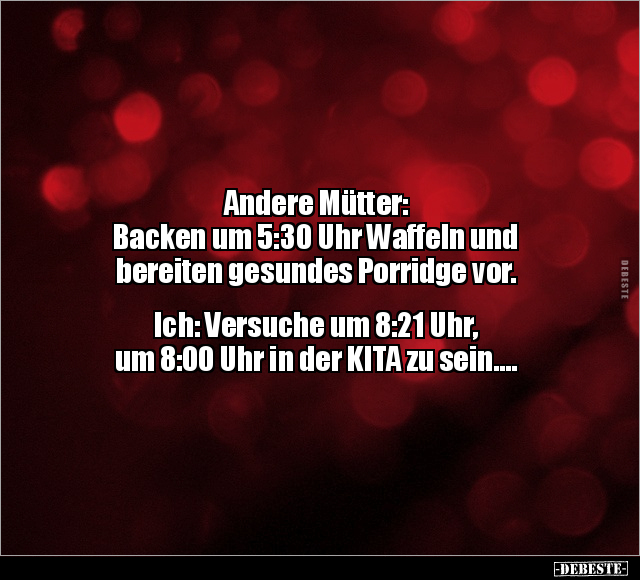 Andere Mütter: Backen um 5:30 Uhr Waffeln und bereiten gesundes Porridge vor. Ich: Versuche um 8:21 Uhr, um 8:00 Uhr in der KITA zu sein....