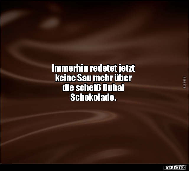 Immerhin redetet jetzt keine Sau mehr über die scheiß Dubai Schokolade.