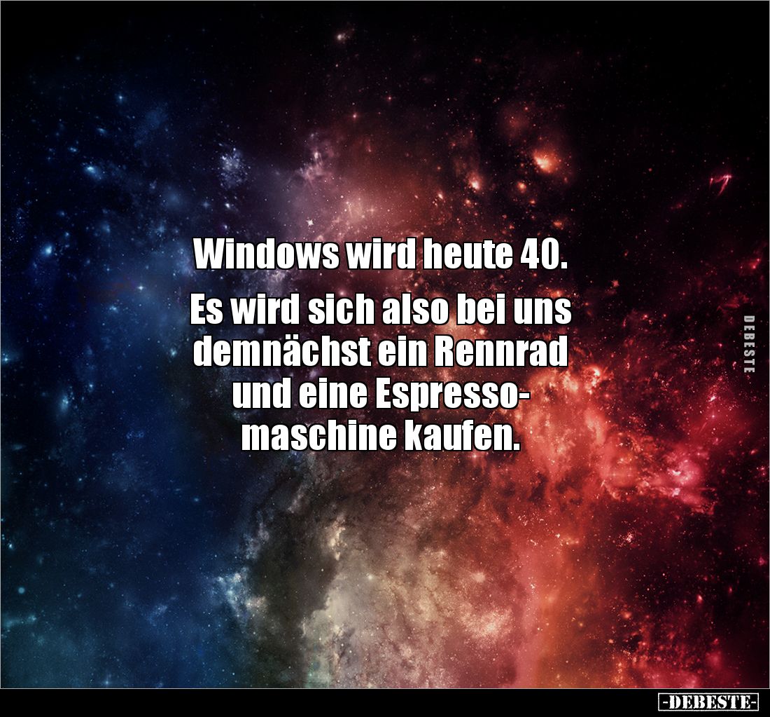 Windows wird heute 40. Es wird sich also bei uns demnächst ein Rennrad und eine Espresso- maschine kaufen.