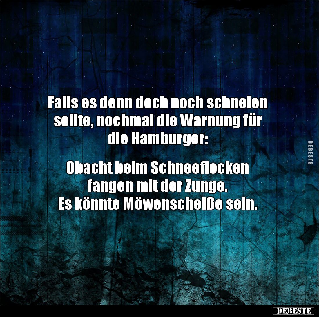 Falls es denn doch noch schneien sollte, nochmal die Warnung für die Hamburger: Obacht beim Schneeflocken fangen mit der Zunge. Es könnte Möwenscheiße sein.