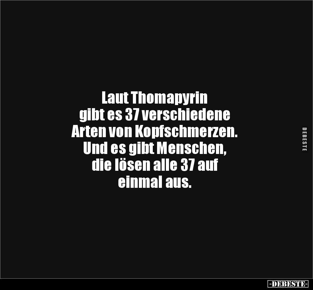 Laut Thomapyrin gibt es 37 verschiedene Arten von Kopfschmerzen. Und es gibt Menschen, die lösen alle 37 auf einmal aus.