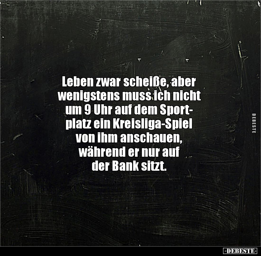 Leben zwar scheiße, aber wenigstens muss ich nicht um 9 Uhr auf dem Sport- platz ein Kreisliga-Spiel von ihm anschauen, während er nur auf der Bank sitzt.