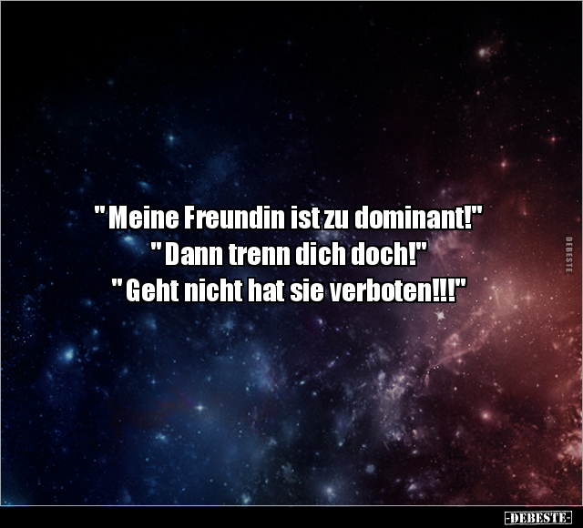 " Meine Freundin ist zu dominant!" " Dann trenn dich doch!" " Geht nicht hat sie verboten!!!"