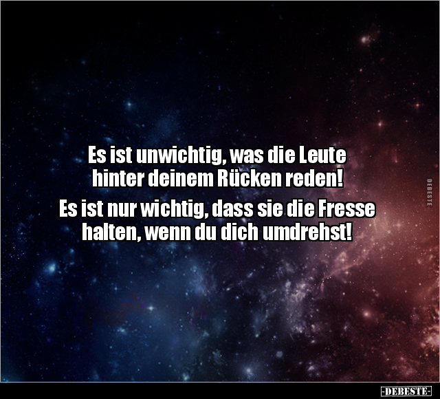 Es ist unwichtig, was die Leute hinter deinem Rücken reden! Es ist nur wichtig, dass sie die Fresse halten, wenn du dich umdrehst!