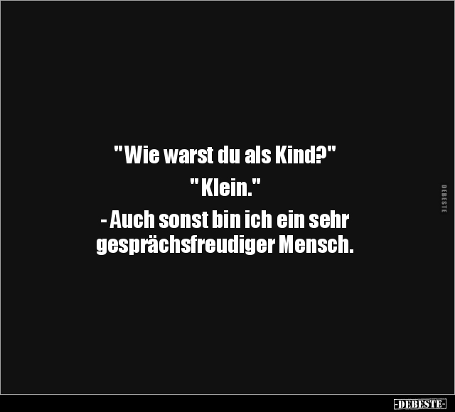 " Wie warst du als Kind?" " Klein." - Auch sonst bin ich ein sehr gesprächsfreudiger Mensch.