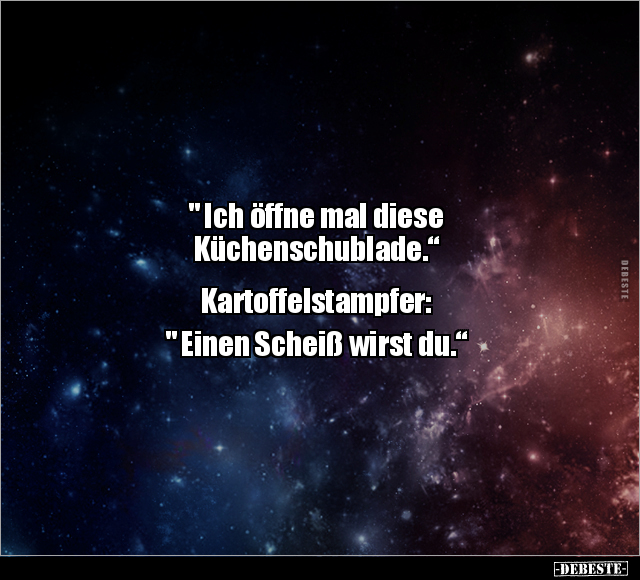 " Ich öffne mal diese Küchenschublade.“ Kartoffelstampfer: " Einen Scheiß wirst du.“