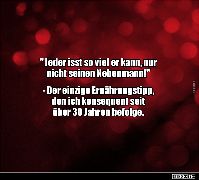 " Jeder isst so viel er kann, nur nicht seinen Nebenmann!" - Der einzige Ernährungstipp, den ich konsequent seit über 30 Jahren befolge.
