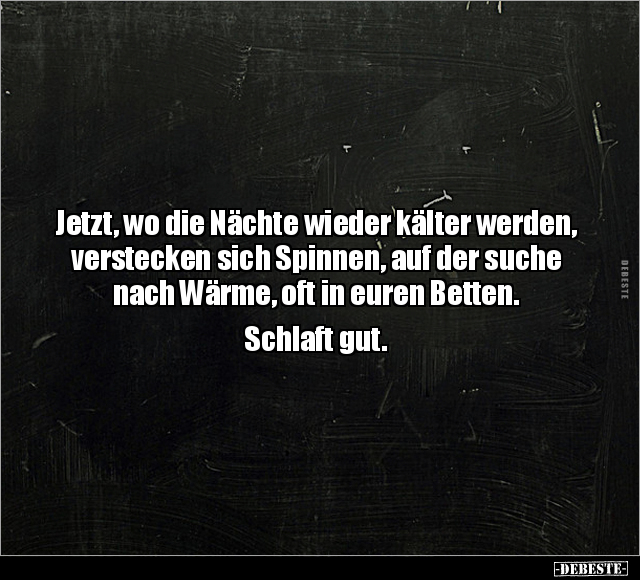 Jetzt, wo die Nächte wieder kälter werden, verstecken sich Spinnen, auf der suche nach Wärme, oft in euren Betten. Schlaft gut.