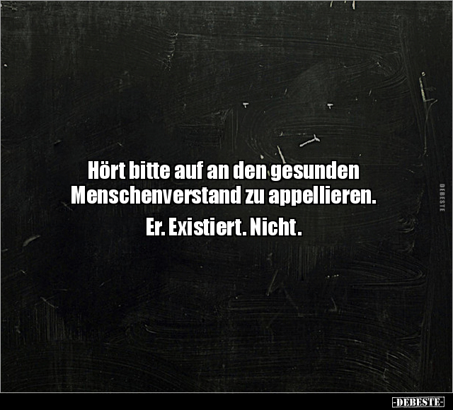 Hört bitte auf an den gesunden Menschenverstand zu appellieren. Er. Existiert. Nicht.