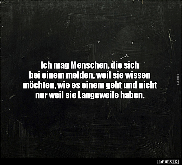 Ich mag Menschen, die sich bei einem melden, weil sie wissen möchten, wie es einem geht und nicht nur weil sie Langeweile haben.