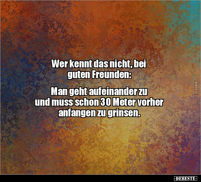 Wer kennt das nicht, bei guten Freunden: Man geht aufeinander zu und muss schon 30 Meter vorher anfangen zu grinsen.