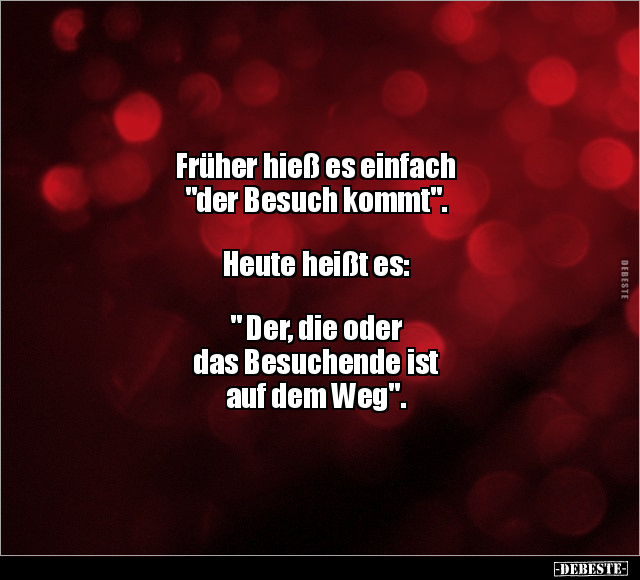 Früher hieß es einfach "der Besuch kommt". Heute heißt es: " Der, die oder das Besuchende ist auf dem Weg".