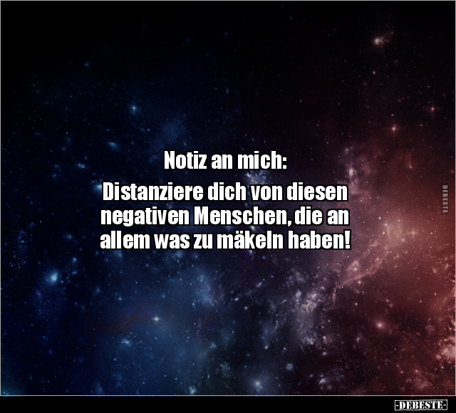 Notiz an mich: Distanziere dich von diesen negativen Menschen, die an allem was zu mäkeln haben!