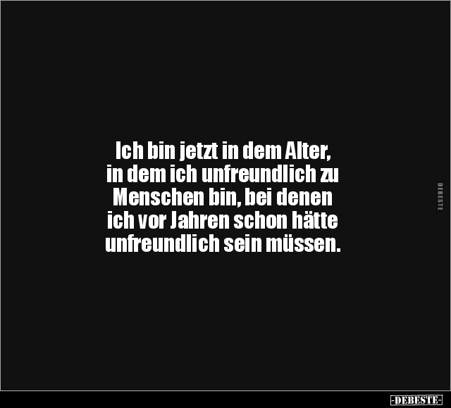 Ich bin jetzt in dem Alter, in dem ich unfreundlich zu Menschen bin, bei denen ich vor Jahren schon hätte unfreundlich sein müssen.
