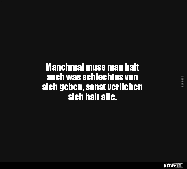 Manchmal muss man halt auch was schlechtes von sich geben, sonst verlieben sich halt alle.