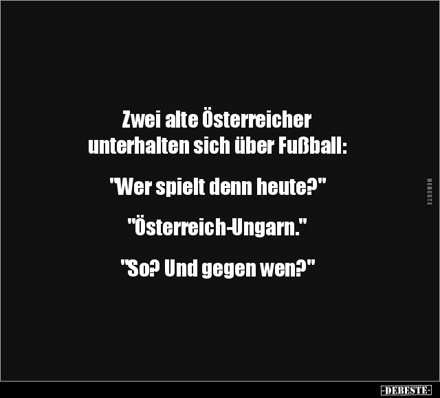 Zwei alte Österreicher unterhalten sich über Fußball: "Wer spielt denn heute?" "Österreich-Ungarn." "So? Und gegen wen?"