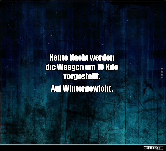 Heute Nacht werden die Waagen um 10 Kilo vorgestellt. Auf Wintergewicht.