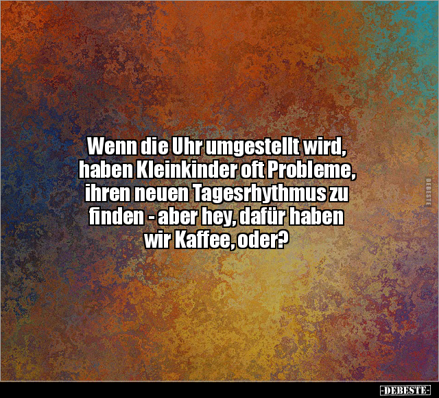 Wenn die Uhr umgestellt wird, haben Kleinkinder oft Probleme, ihren neuen Tagesrhythmus zu finden - aber hey, dafür haben wir Kaffee, oder?