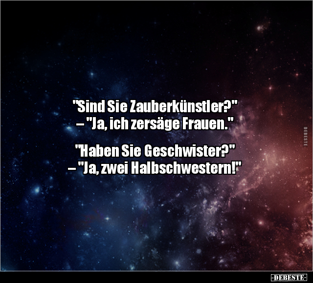 "Sind Sie Zauberkünstler?" – "Ja, ich zersäge Frauen." "Haben Sie Geschwister?" – "Ja, zwei Halbschwestern!"